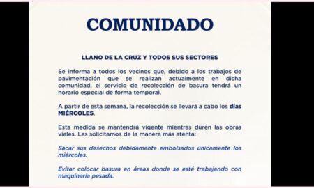 COMUNICADO A USUARIOS DEL TREN DE ASEO DE LA COMUNIDAD LLANO DE LA CRUZ Y SECTORES VECINOS