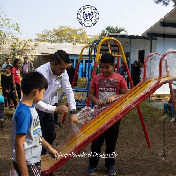 Luego de la gestión realizada por los catedráticos, con la intención de que los alumnos tengan espacios recreativos, el señor alcalde Ivan Morales Jr. realizó esta mañana la entrega de columpios y resbaladeros, que fueron bien recibidos por los alumnos.